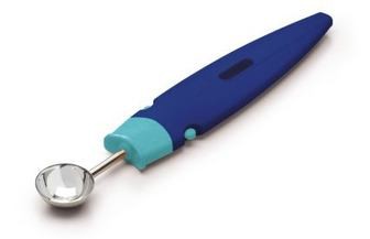 Ложка Нуазетка имеет сферическую форму и острые края, выполнена из нержавеющей стали, а съёмная ручка изготовлена из прочного пластика.
