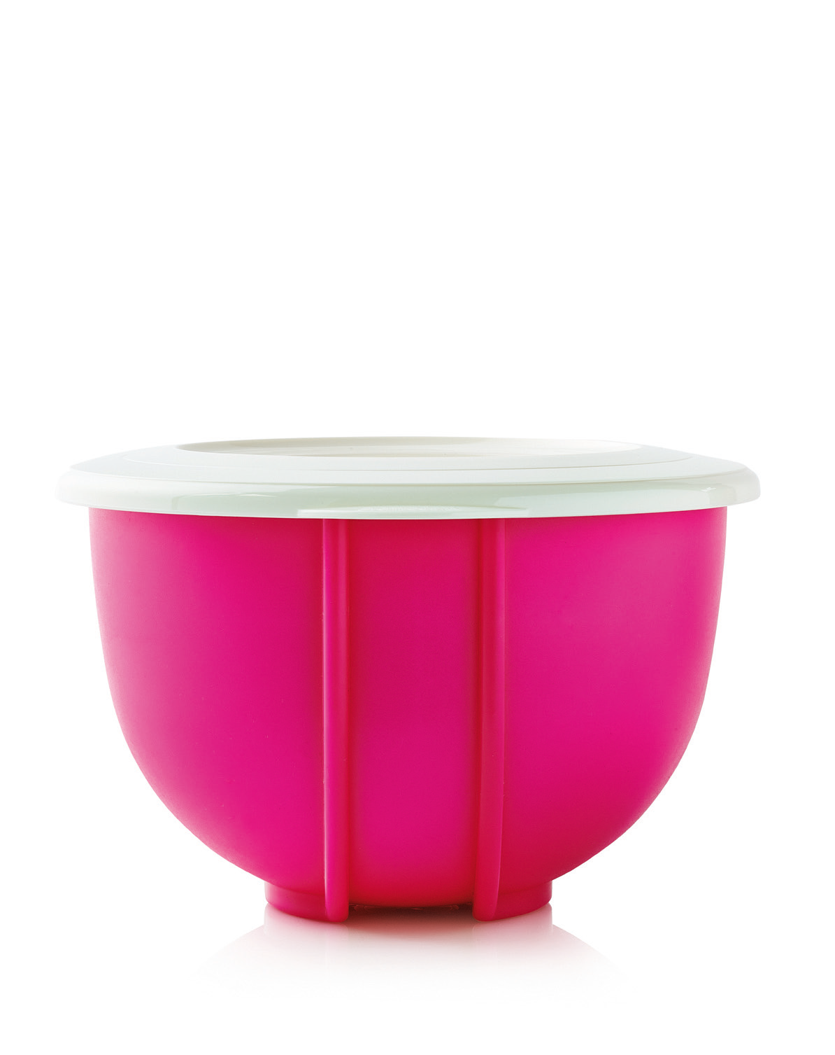 Внутренняя поверхность основания гладкая, белого цвета, а внешняя - приятно бархатистая, с двумя поперечными ребрами. Защищающие от скольжения на месте, ребра имеют такую форму, что миску удобно держать в руках в любом положении. Ребра расходятся друг от друга и образуют закругление в области дна - за счет этого миска получает особенную устойчивость. Благодаря внешним ребрам и выливной кромке шириной около 1 см миска может удобно удерживаться одной рукой в наклонном положении. Скошенный край емкости позволяет аккуратно выливать содержимое, не проливая ни капли мимо. Герметичная крышка обеспечит продукту безопасную транспортировку в различных положениях, а также сохранит свежесть содержимых продуктов. Язычок на крышке с одной ее стороны, позволяет без труда открыть и закрыть емкость. Крышку и основание изделия можно мыть в посудомоечной машине.