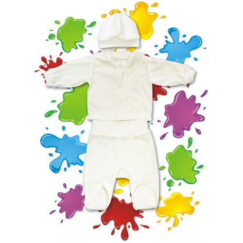 В комплект входят: кофточка, ползунки короткие, шапочка