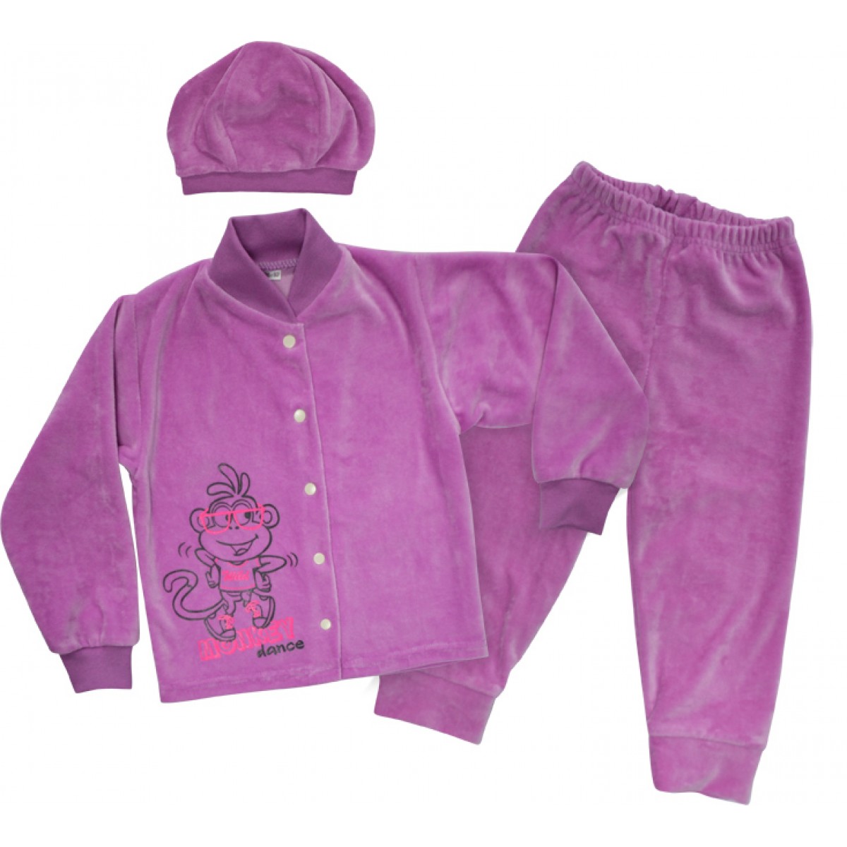 Яркий удивительно мягкий костюмчик из велюра с забавным беретом для малышей
