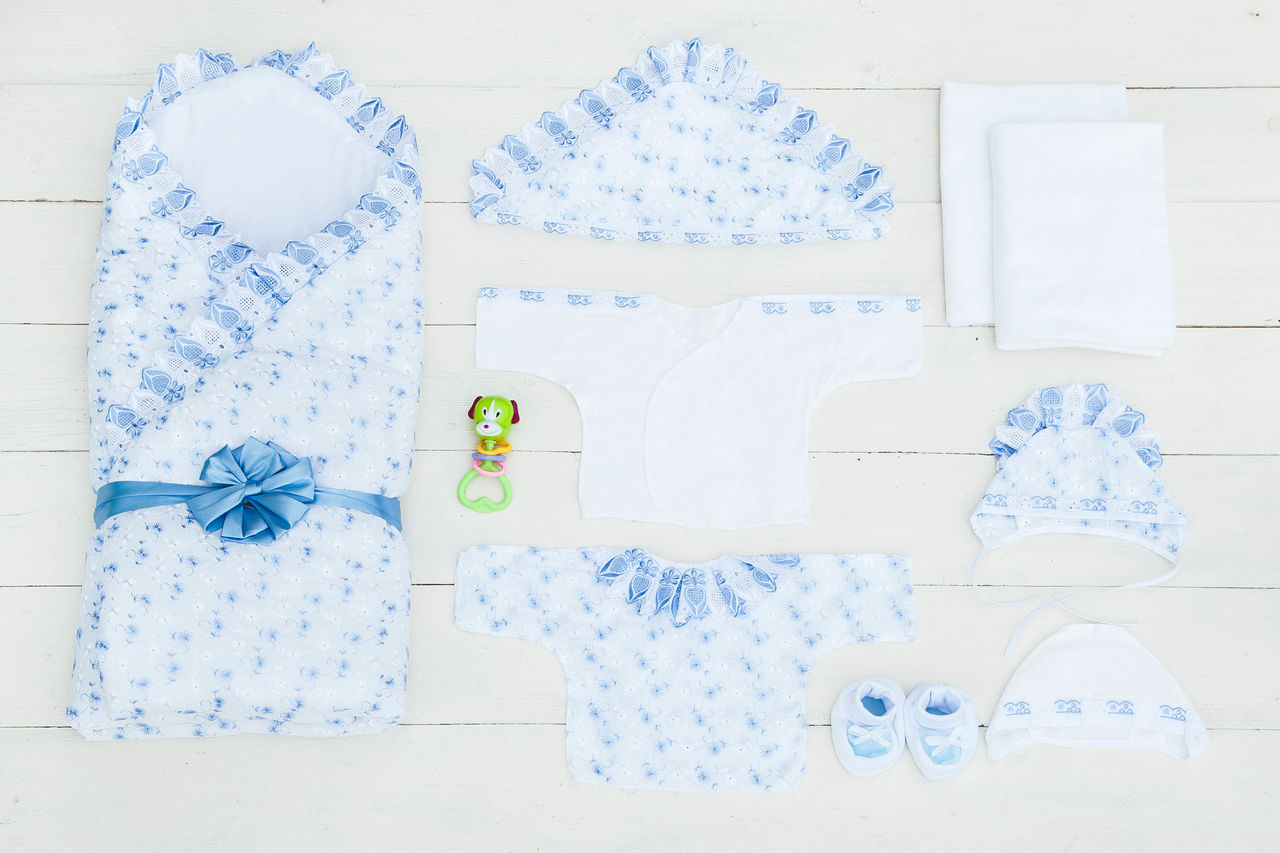 Одеяло 100*100(шитьё), уголок 80*80, чепчик(шитьё), чепчик теплый, распашонка теплая, распашонка (шитьё), пеленка теплая, пеленка легкая, пинетки, погремушка