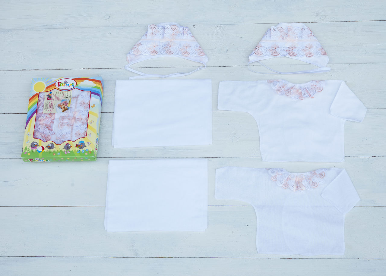 Чепчик легкий (ситец) с шитьём, чепчик теплый (фланель) с шитьём, распашонка теплая (фланель) с шитьём, распашонка легкая (ситец) с шитьём, пеленка легкая (ситец) - 2шт.