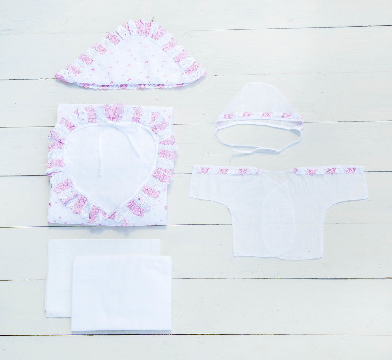 Пододеяльник 120*125 (шитьё), пелёнка лёгкая, пеленка тёплая, чепчик лёгкий, распашонка лёгкая, уголок