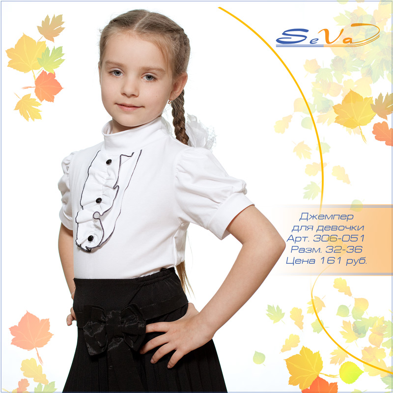 Описание: Короткий рукав-фонарик, воротник-стойка, жабо с контрастной отделкой и пуговицами