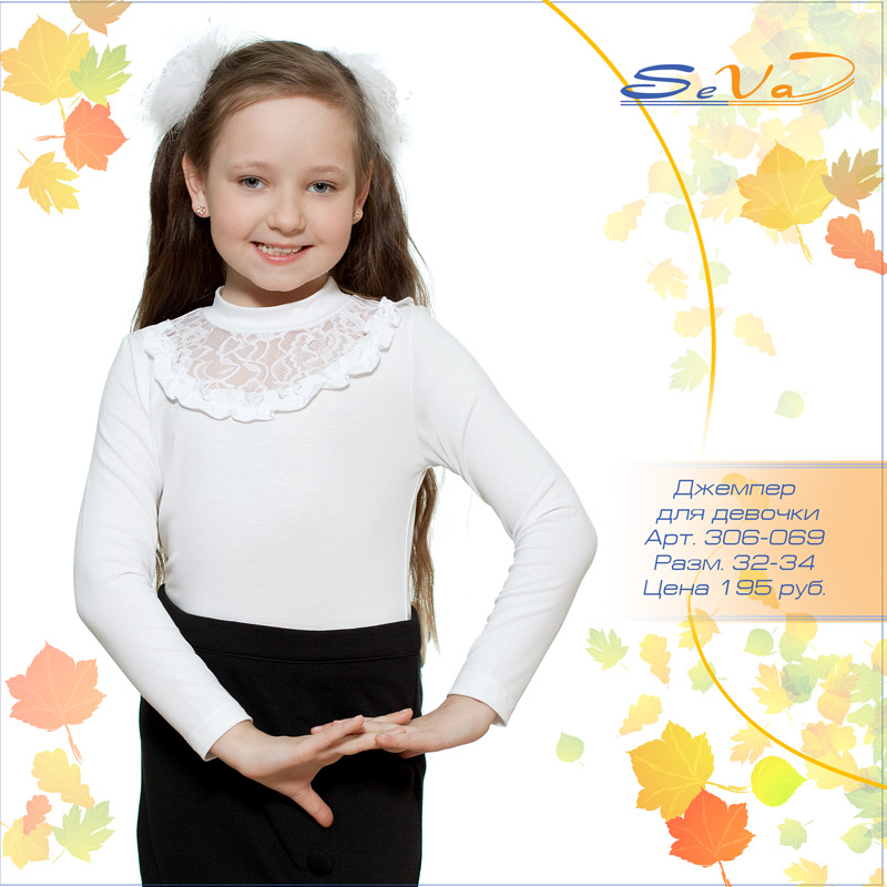 Описание: Длинный рукав, воротник-стойка, кружевная вставка и рюша по полочке
