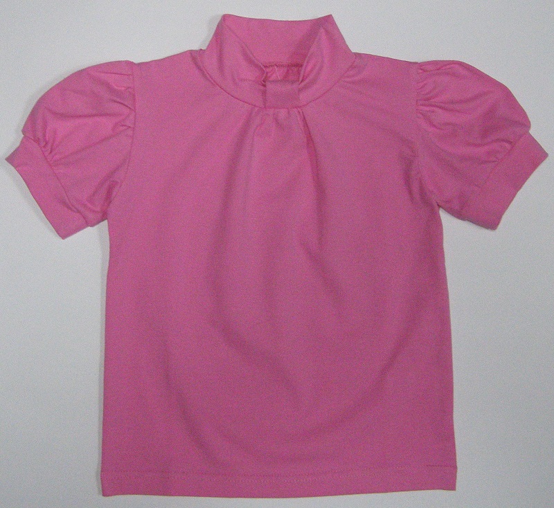 Описание: Короткий рукав-фонарик, воротник-стойка (с хлястиком), декоративная сборка по горловине
