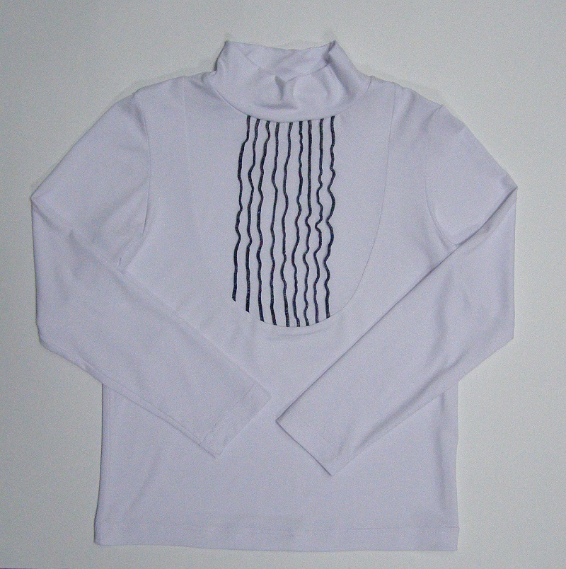 Описание: Длинный рукав, воротник-стойка, декоративная строчка по кокетке
