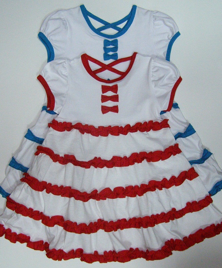Описание: Короткий рукав-фонарик, декоративные рюши по расклешенной юбочке, бантики по кокетке
