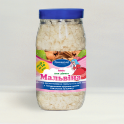 Детская ароматизированная морская соль для ванн с натуральными эфирными маслами эвкалипта и корицы.