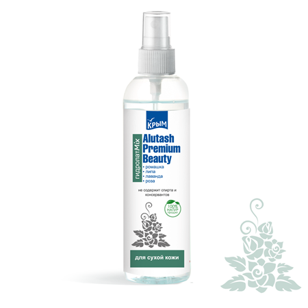 Состав: гидролат ромашки, гидролат липы, гидролат лаванды, гидролат розы. Не содержит спирта и консервантов. Гидрполаты Алуштинского эфиромасличного совхоз-завода производятся с использованием воды Чатыр-Дагской с источника Хачи-I вулканического масива Чатыр-Даг.