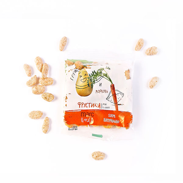 Состав: рис, овес, лен, морковь, груша. Без сахара, без глютена.