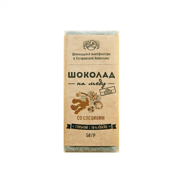 В состав вошли только натуральные, самые лучшие ингредиенты: какао тертое (70 %), натуральные специи, масло какао, а вместо сахара - настоящий мед! Это значит, что этот шоколад очень и очень полезный, ведь мед содержит необходимые организму аминокислоты и усваивается гораздо лучше, нежели сахар.