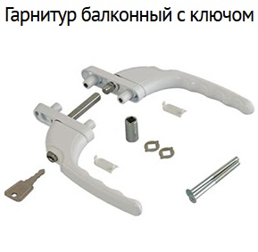 Гарнитур предназначен для установки на пластиковые двери, требующие открывания с двух сторон. Например: балконный выход, офисные перегородки и т. д. Балконный гарнитур оснащен замком.
