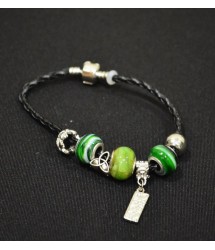 Представленный браслет оформлен в стиле Пандора. Это направление остается в моде уже несколько сезонов и, как видимо, еще не скоро из неё выйдет. На странице представлена оригинальная модель, выполненная с преобладанием зеленого цвета.