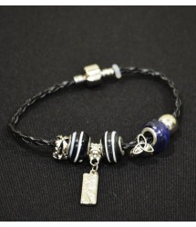 Все элементы браслета идеально гармонируют друг с другом. Стеклянные шармы разных цветов и рисунков на поверхности, декоративные вставки металлического цвета и даже прямоугольная подвеска - все это располагается на стильном основании из кожзама.