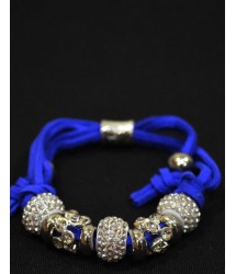 В отличие от оригинальных браслетов Пандора, данная модель имеет тканевую основу насыщенного цвета электрик, которую легко подогнать под конкретный объем запястья. За эстетическую составляющую украшения отвечают металлические бусины причудливой формы. Браслет отличается отменным качеством исполнения.