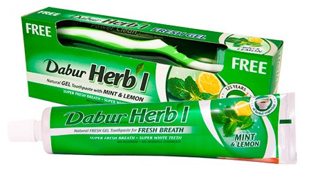 Зубная паста Dabur Herb'l Mint & Lemon не содержит вредных химических веществ и фтора.