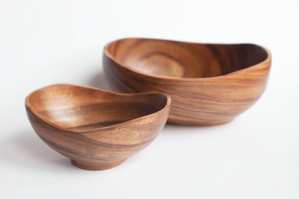 Салатники ручной работы из акации. Салатница из дерева подходит как для холодных закусок, так и для масляных салатов. Вся посуда покрыта пищевым лаком, совершенно нетоксичным и безвредным для здоровья. Лак препятствует впитыванию влаги в изделие, тем самым продлевает срок его службы. Деревянные салатницы выглядят изысканно и достойно на любом столе - и повседневном, и праздничном.
