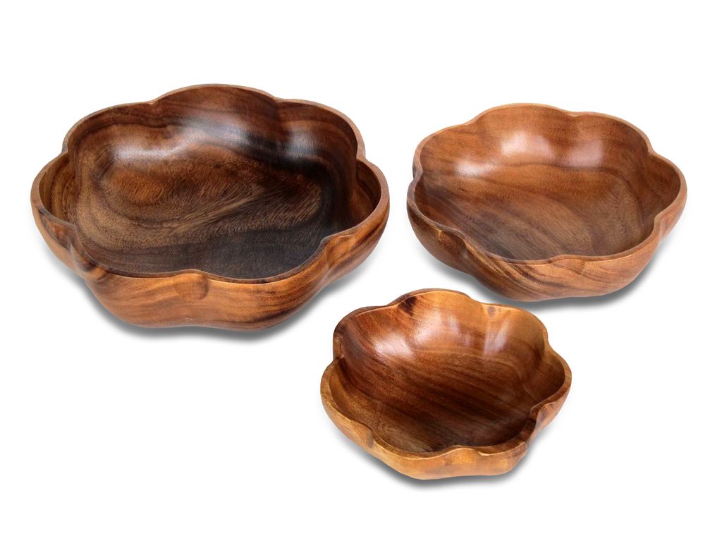 Салатники ручной работы из акации. Салатница из дерева подходит как для холодных закусок, так и для масляных салатов. Вся посуда покрыта пищевым лаком, совершенно нетоксичным и безвредным для здоровья. Лак препятствует впитыванию влаги в изделие, тем самым продлевает срок его службы. Деревянные салатницы выглядят изысканно и достойно на любом столе - и повседневном, и праздничном.