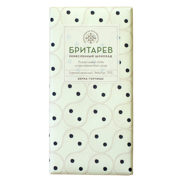 Состав: какао-бобы, сахар тростниковый, зерна горчицы, содержание какао 70%.