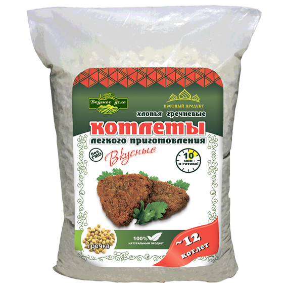 Состав: хлопья натуральные гречневые, хлопья натуральные ячменные, панировка гречневая, соль, чеснок, куркума, черный перец