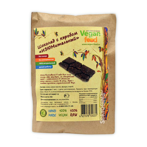 Состав: изюм, какао-масло фундук, кэроб.