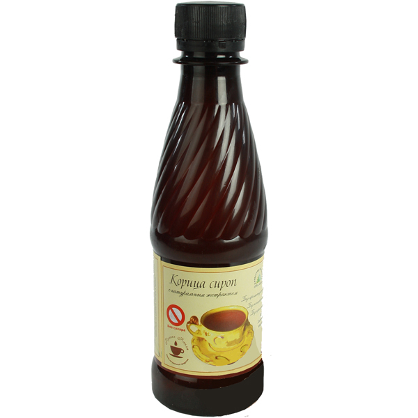 Сироп приготовлен с использованием натурального экстракта корицы. В состав продукта также входит растительный подсластитель - стевиозид (сок стевии) и фруктоза. Этот компонент обеспечивает низкую калорийность и придает сиропу пряный аромат и вкус.