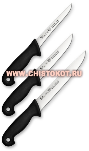 Набор профессиональных ножей гарантирует качественное исполнение любой работы на кухне. Нескользящая, объемная, эргономичная рукоятка удобно ложится в ладонь - измельчать и нарезать продукты становится намного легче. Лезвия выполнены из высококачественной нержавеющей стали.