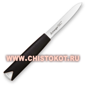 Острое мелкозубчатое лезвие ножа легко нарезает плоды с плотной кожурой и нежной мякотью, которая при этом не заминается.