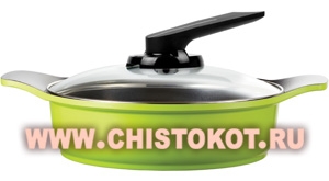 Поверхность сотейника покрыта уникальным покрытием, состав которого включает алмазно-керамическую крошку. Данное покрытие запатентовано как <