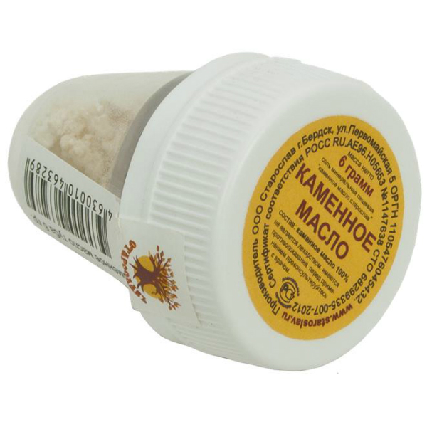 Каменное масло - это натуральный минерал, образующийся в ходе выщелачивания горной породы. Оно имеет характерный белесо-желтый цвет и уникальный химический состав, который мало изучен. В каменном масле обнаружено большое количество калия, кальция, натрия, фосфора, кремния, железа, магния, йода, а также золото, платина и серебро.