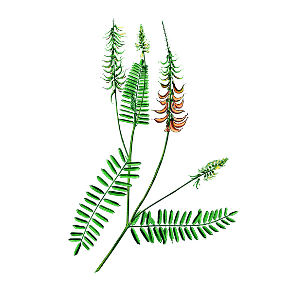 Астрагал усиливает азотовыделительную способность почек, улучшает кровообращение в почках и стимулирует диурез. Сырьем для препарата являются цветки и листья астрагала серпоплодного, растения с прямостоящими стеблями до 85 см, иногда достигающего 1 м в высоту.