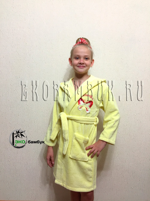 На девочек с 4 до 8 лет халатик с ушками и кошкой, для тех кто постарше - обычный капюшончик и с бабочкой. Размеры в годах указаны из расчета как вы покупаете детские вещи в Zara, H&M и т.д.