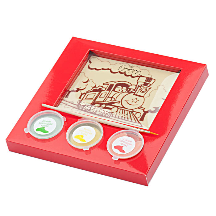Содержание: Набор шоколада: полотно из белого шоколада, шоколадные краски.