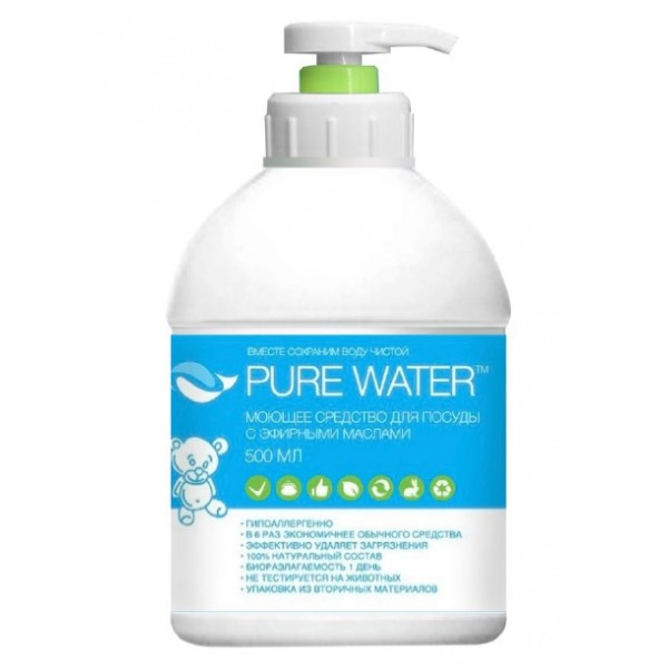 Pure Water отлично справляется со своей задачей - средство эффективно очищает посуду и устраняет неприятные запахи, при этом легко и полностью смывается водой. А эфирные масла бережно ухаживают за кожей рук.