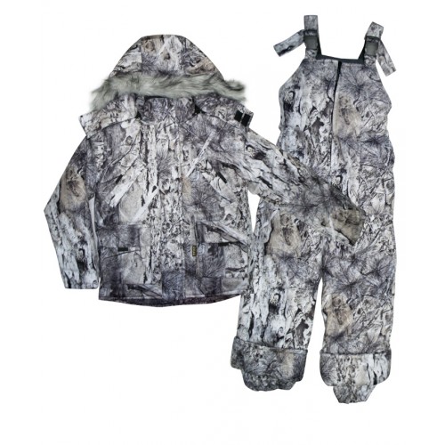 Куртка утеплённая с отстёгивающимся капюшоном с опушкой, с застёжкой на молнию, с ветрозащитным клапаном, два верхних прорезных кармана с листочкой и два нижних накладных кармана с клапанами. Трикотажные манжеты внутри рукавов. Подкладка флис. Утеплённый полукомбинезон с регулируемыми брителями с застёжкой на молнию и боковыми накладными карманами, эластичной тесьмой по талии. Утеплитель: термофайбер