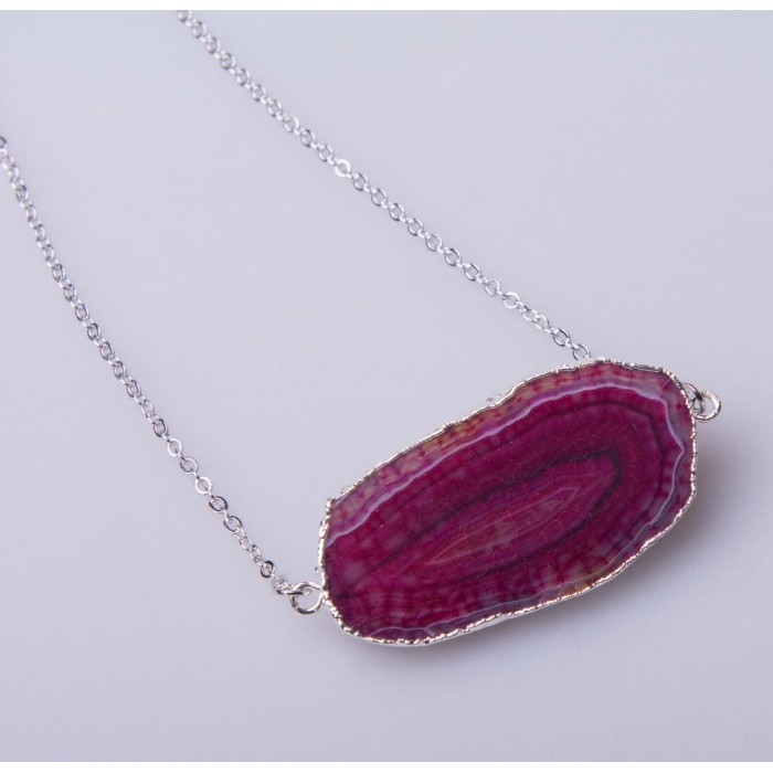 Натуральный агат -- один из самых красивых камней среди халцедонов. Нарядная полосчатость, образованная слоями шириной от долей миллиметра до нескольких миллиметров, тонкие цветовые переходы, насыщенная палитра окраски этого камня -- все это делает агат крайне привлекательным. Полосчатый рисунок в агатах возникает благодаря ритмичному отложению разноокрашенного халцедона.