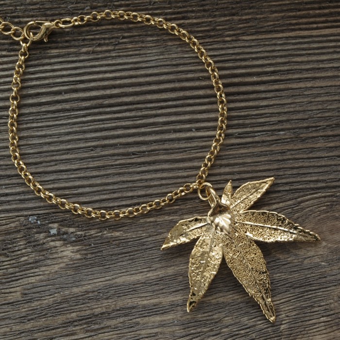 Браслет изготовлен на основе натурального листа японского клена с гальваническим покрытием золотом 24 карат.