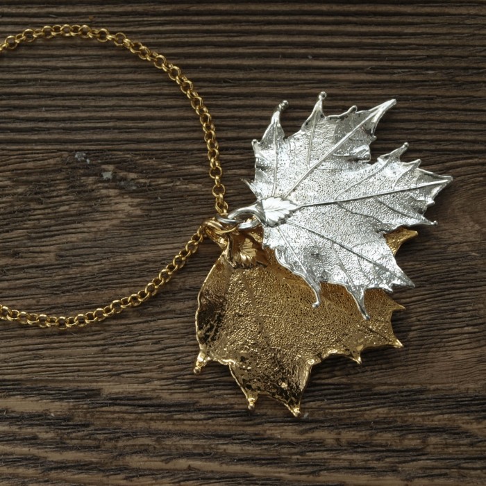 Браслет изготовлен на основе натурального листа канадского клена с гальваническим покрытием серебром и золотом 24 карат.