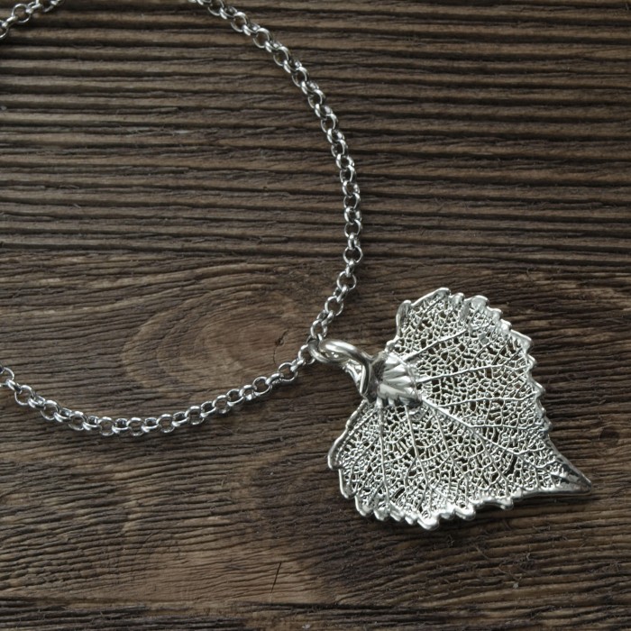 Листья собирают, высушивают и покрывают серебром. Украшения из листочков получаются очень красивыми, легкими и при этом очень прочными.