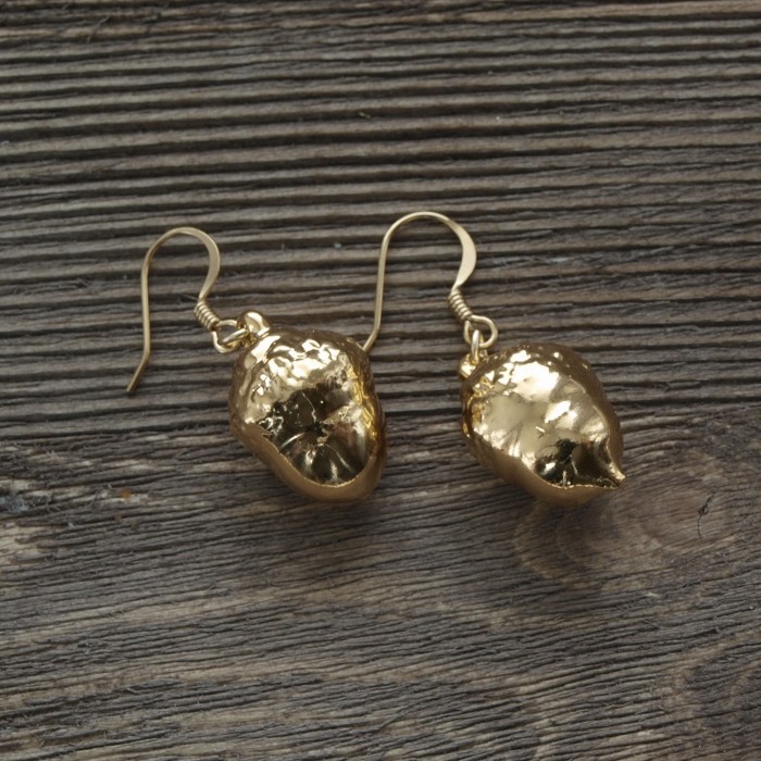 Серьги изготовлены на основе натурального желудя с гальваническим покрытием золотом 24 карат.