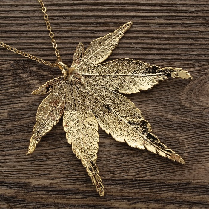 Кулон изготовлен на основе натурального листа японского клена с гальваническим покрытием золотом 24 карат.