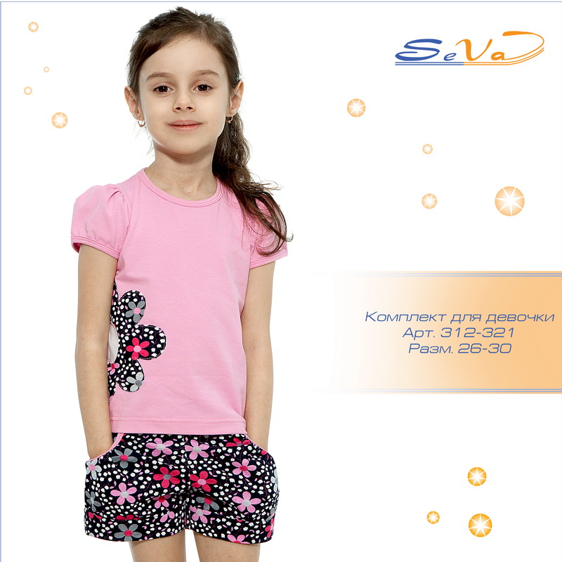 Описание: Футболка с коротким рукавчиком и нашивкой "Цветочек", и шорты с карманами.