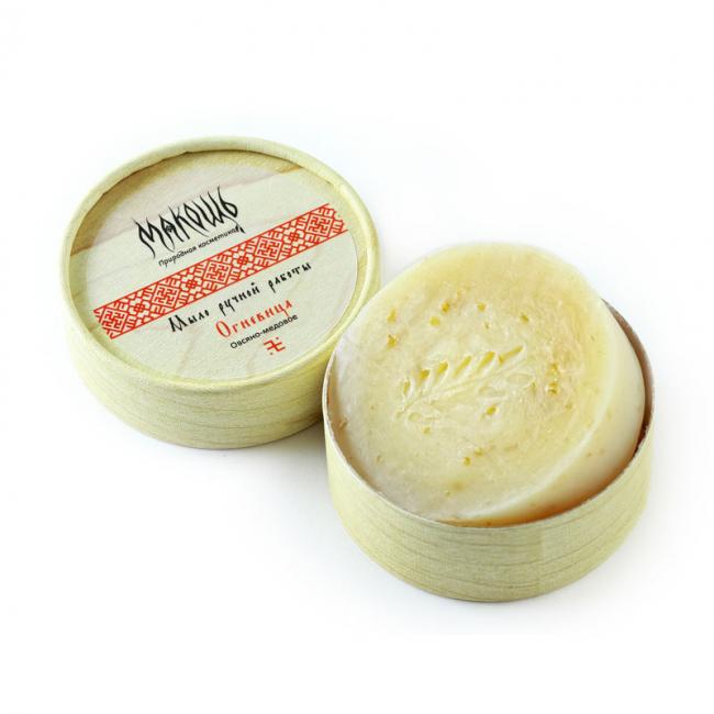 Состав: отвар калины и рябины; омыленные кокосовое, пальмовое, пальмоядровое, абрикосовой косточки, виноградной косточки, касторовое масла; миндальное, зародышей пшеницы масла, , лактат и цитрат натрия (молочная и лимонная кислоты), глицин, протеины пшеницы, молотый овес, пчелиное маточное молочко, мед, эфирное масло сандала