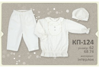 0512411 КП124 Комплект нарядный (кофточка, штанишки, шапочка) 746,00 белый 68