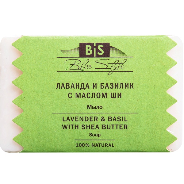 Состав: мыльная основа ("лапша") кокосового и пальмового масла, вода, масло ши (карите), эфирное масло лаванды, эфирное масло тулси (базилик священный).