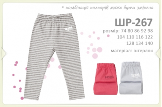 ШР267 Легинсы, интерлок 179,00 разные д/девочки 80