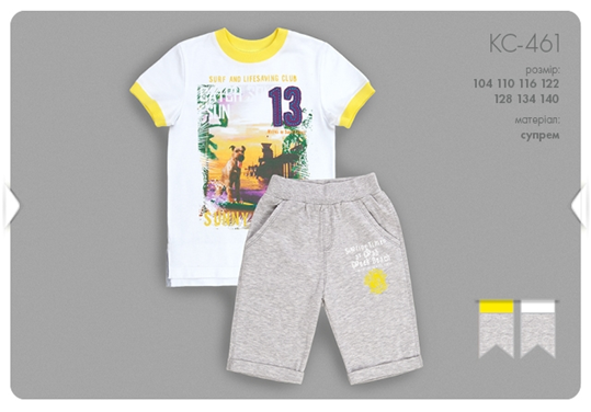 КС461 Костюм, супрем, д/мальчика 658,50 желтый+серый 128