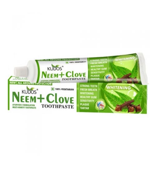 Зубная паста Кудос с Нимом и гвоздикой великолепно очищает зубы от налета, отбеливает, лечит пародонтоз и кровоточивость десен. Вы сможете качественно очистить налет на зубах, возникший от табака или чрезмерного увлечения кофе.