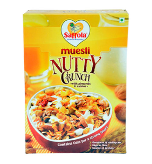 Saffola Мюсли - питательная смесь из цельных зерен (овес и пшеница), а также кукурузных хлопьев, сухоруктов и орехов. Saffola мюсли- это не только чрезвычайно питательно, полезно и вкусно, но и требует минимальных усилий. Это действительно разумный способ оставаться в форме